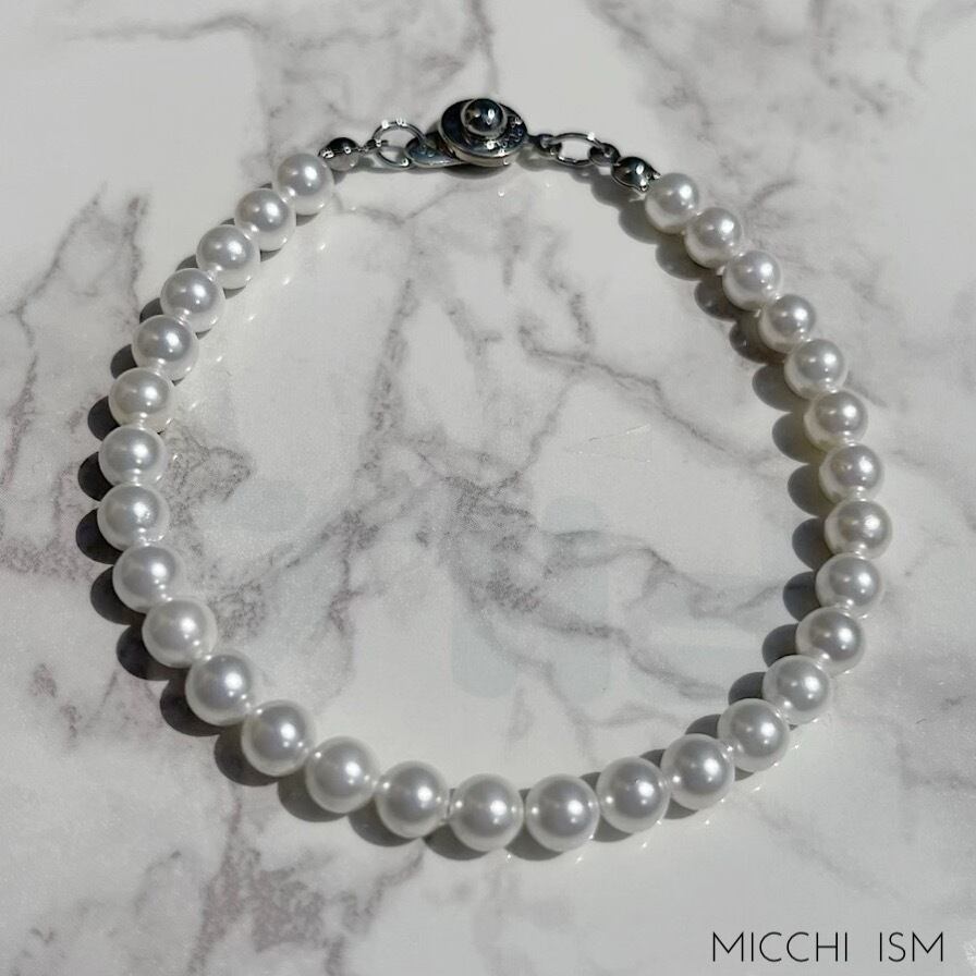 高いランクのパールを使ったブレスレット。 パールの上品な輝きを放ちながら、シンプルでラグジュアリーな雰囲気を感じさせるパールアクセサリー。 カジュアルと気品を兼ね備えた、周りと差がつくアイテムです。