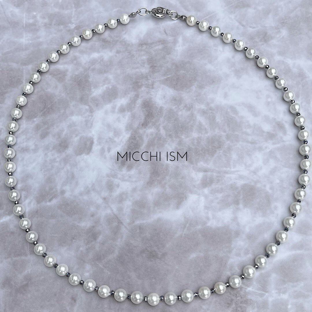 パール玉とミラーカットテラヘルツの組み合わせネックレス。