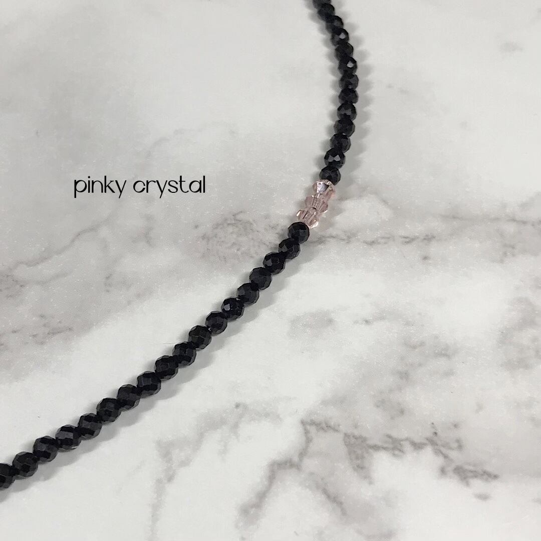キラキラ凄いします。ブラック一色シンプルでさらにピンククリスタルのラグジュアリービーズが左右に入り非常に奇麗に輝き放つネックレス。