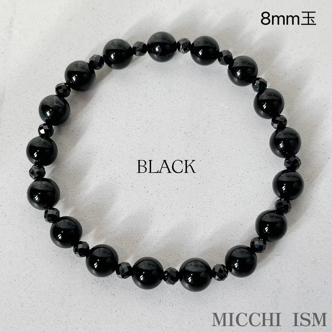 モリオン 黒水晶 天然石 ハンドメイド ブレスレット モリオン丸玉8mm ブラックスピネルミラーカット玉3mmブラック シンプル メンズ レディース 流行り 大人気 | MICCHI ISM アクセサリー